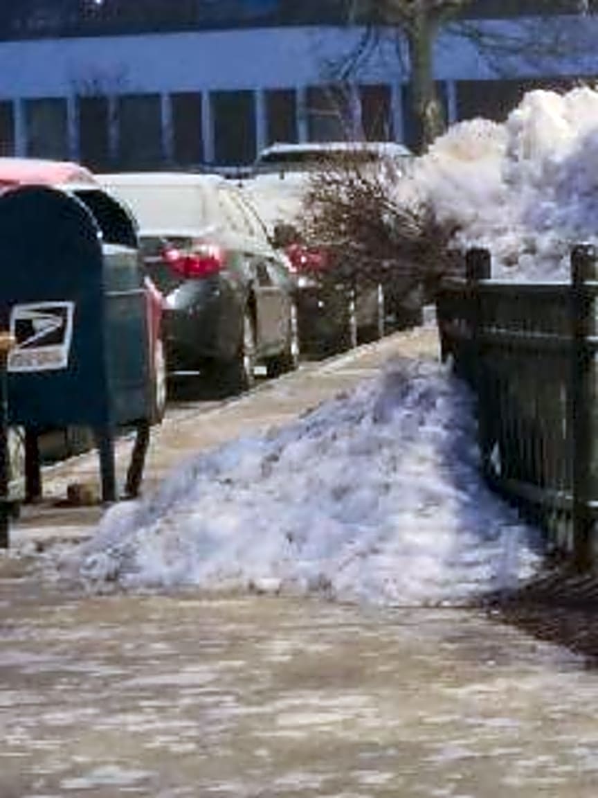 - Snow still blocking sidewalk on soldiers field Pl near intersection after the Acura dealership plowed this pile onto it