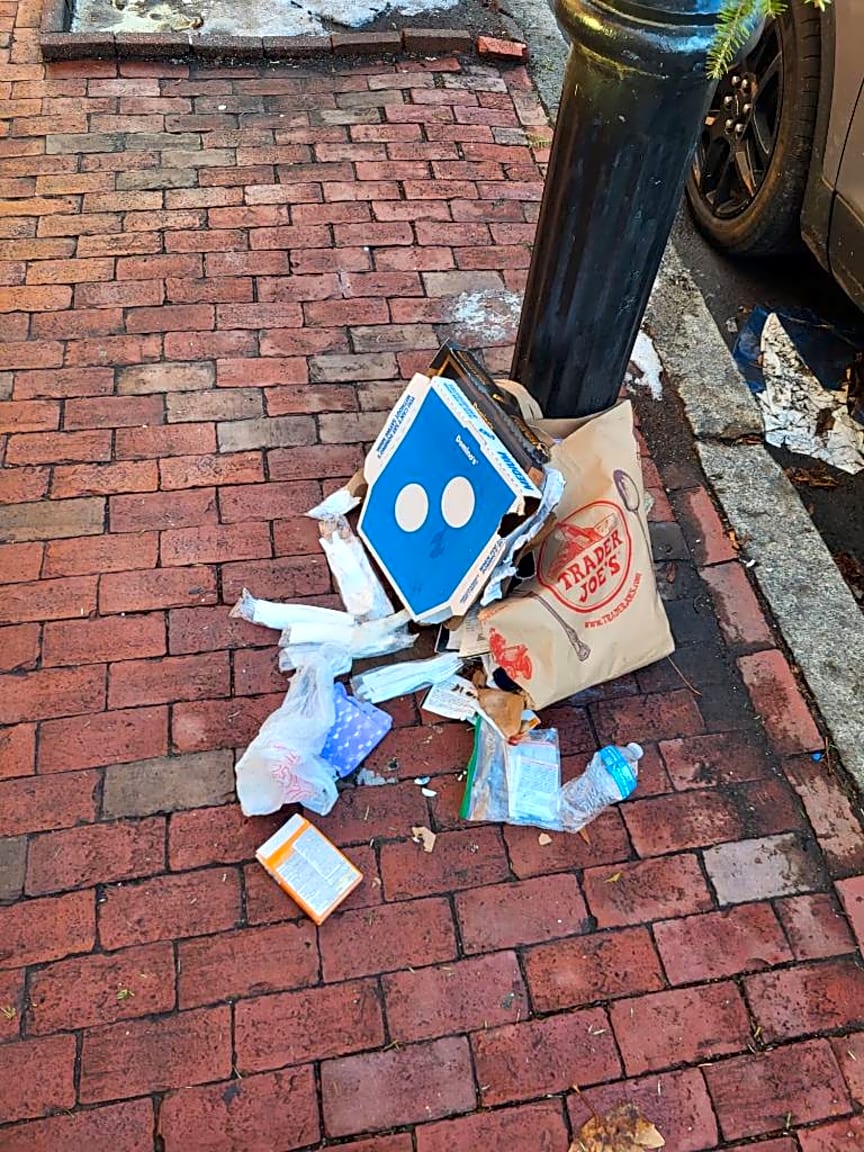 Resolved. No evidence found at time of inspection. Tomorrow is the scheduled pickup for this area.