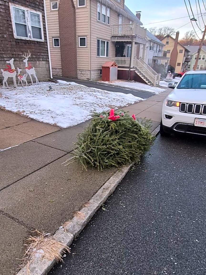 Resolved. Pick up one Christmas tree on curb today . 1/9/26.