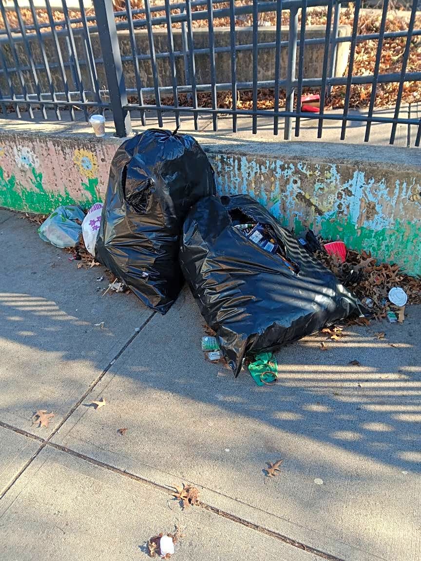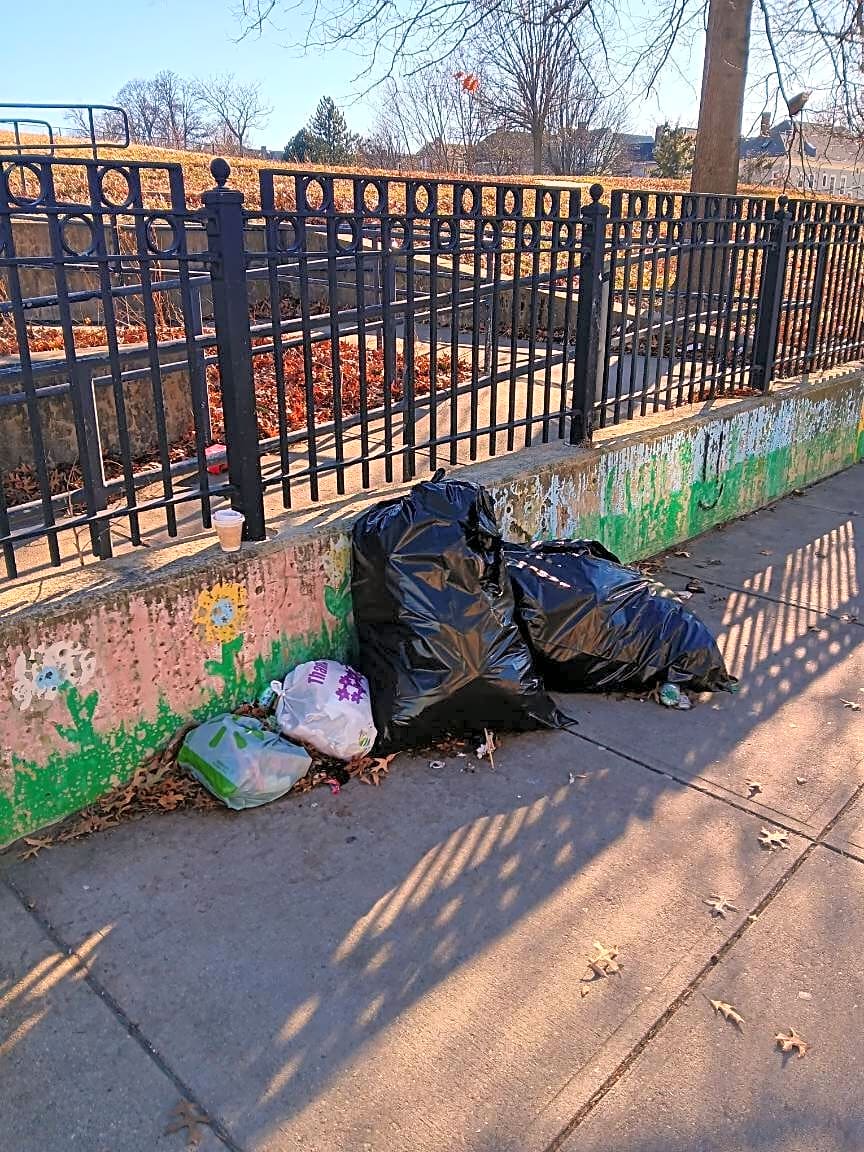 - Trash on the sidewalk