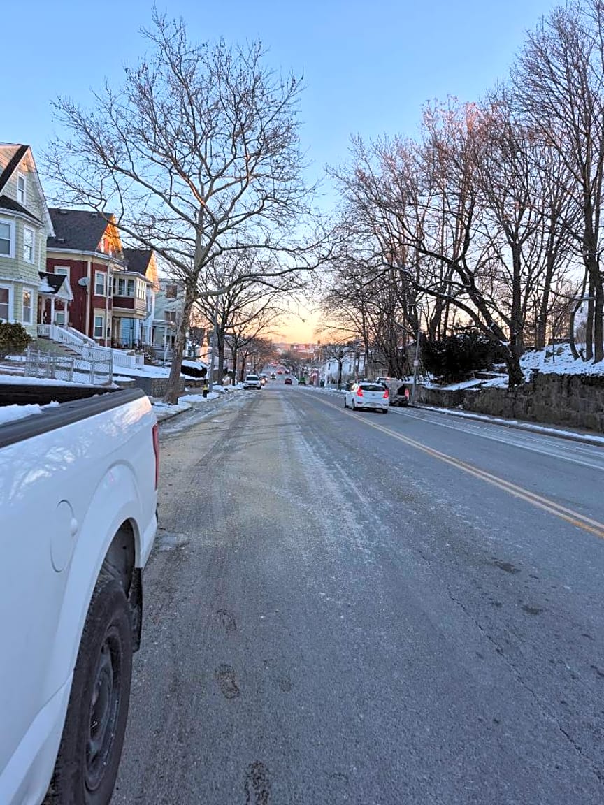- Lately a lot of water would collect and freeze all throughout this part of Washington street, in Roslindale. This is right by the best of Boston gas station. It’s very dangerous to try and park the car there and parking on the other side of the street will get me ticketed, since it’s a bus lane. The last snow fall a UPS truck was stuck and slide down a bit. The ice continues down like half the block.