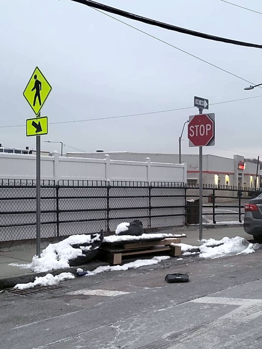 - Caller states there is a bed frame and other items that are covered by snow that were dumped there last week on the sidewalk. Caller is requesting inspection and removl. | Witnessed incident: [No]