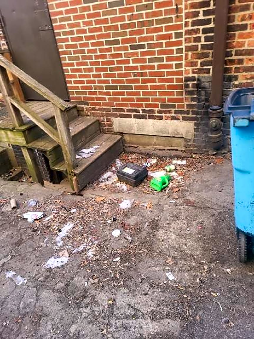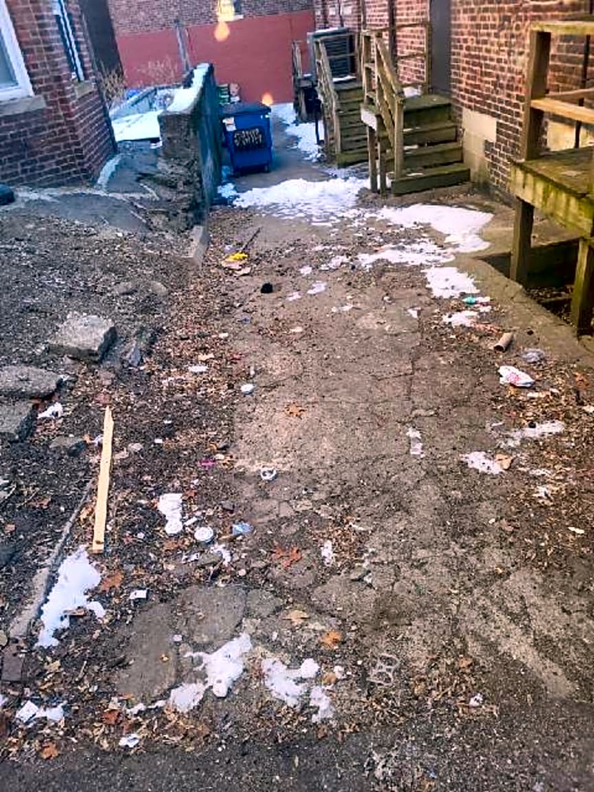 - Loose trash, rear alley of businesses