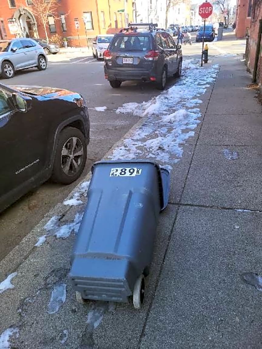 - Emptied barrels left out on sidewalk | Details: [The barrels are coming from 293 K St but they dump then on the side of my house. The barrels have dog poop bags in them. Please don't ticket us, ticket 293 K st because the barrels say 293 K st.] Exact location: [side]