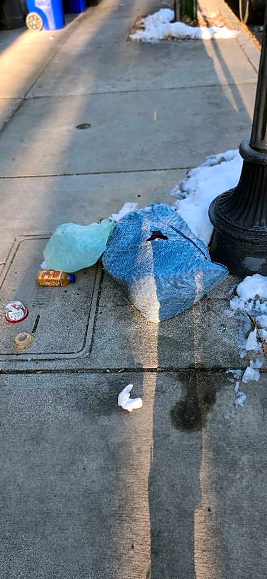 - Garbage spread on corner bag opened by rats greenwich st dead end