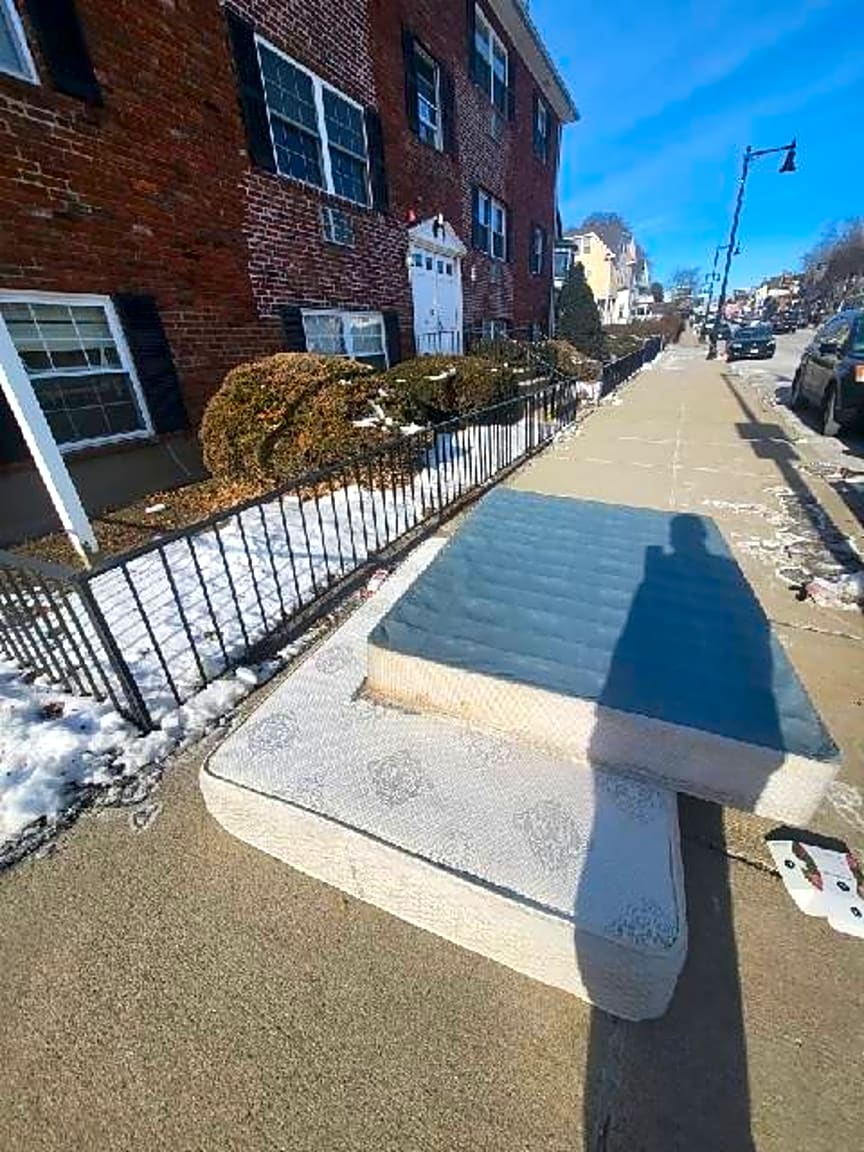 - Constituent reports someone dumped mattresses on the sidewalk. Constituent reports there is car parts as well. |