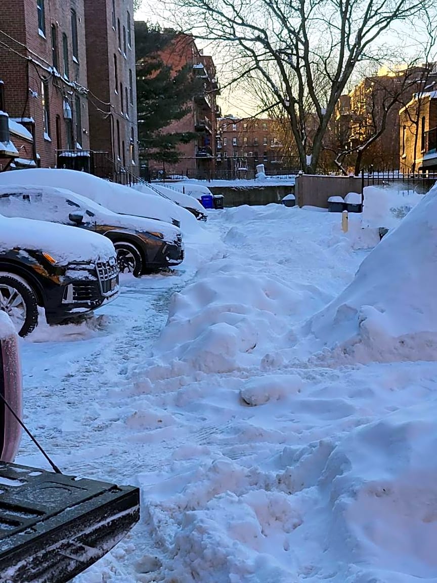 - T shaped Alley durham to cumberland and saint botolph st. Its in the alley way area. The constituent states someone pushed the snow so bad that the cars and trash is trapped in the back. The constituent states some of residents cant leave at all. The trash truck will be unable to get through in the back. This is a safety hazard. Requesting assistance with this matter. | Witnessed incident: [Yes]