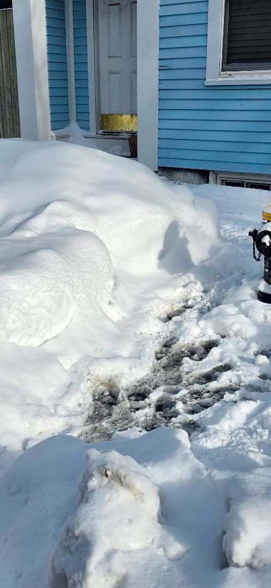 - My neighbor stacked a huge pile of snow on the sidewalk and you can’t walk on the sidewalk between my property and theirs. My property is located at 152 w third street. If you’re looking at my property from the street, my neighbor directly to the right of me is the one who stacked the snow on the sidewalk between my building and theirs.