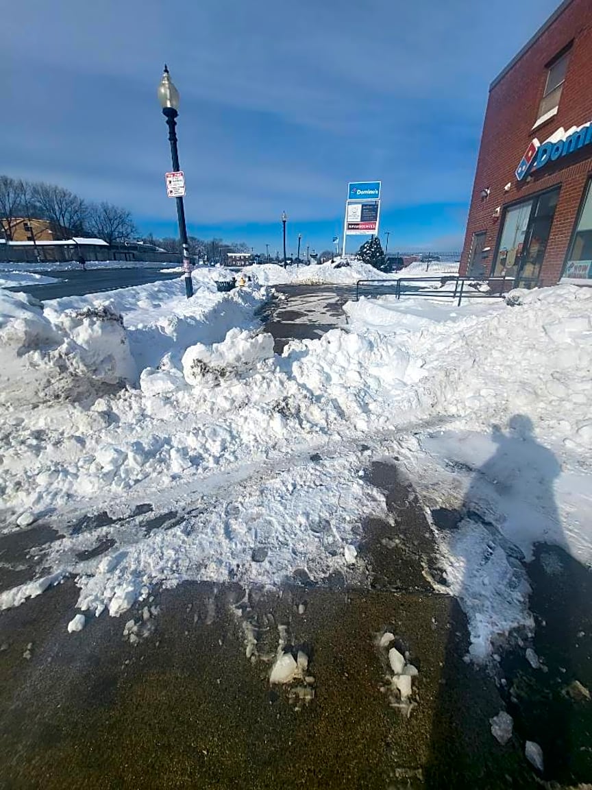 - Snow banks obstructing sidewalk