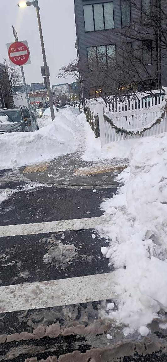 - Snow not cleared at all on I st section of this house. People are having to climb over snow banks to continue on sidewalk or get to street. Dangerous