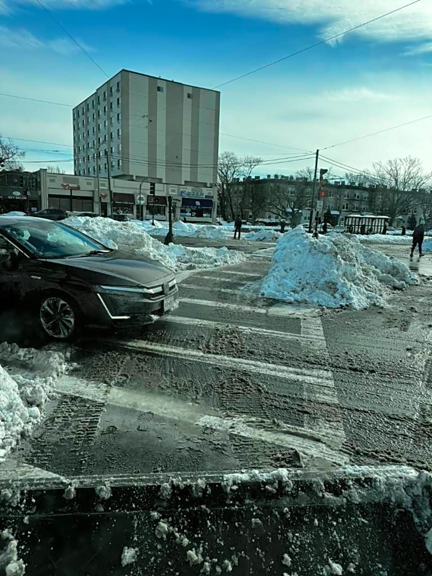- No one is able to walk across the intersection at Packards Corner. I have to walk on Commonwealth Ave and risk being hit by cars to get to the train. (1102 Comm Ave) this intersection needs to be shoveled.