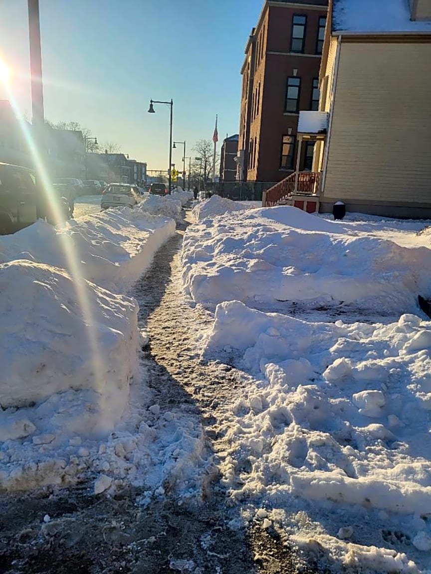 - Constituent states that sidewalk in front of property and side has not been cleared of snow | Unshovelled location: [Sidewalk] City Owned: [No] Exact location: [Front/side]
