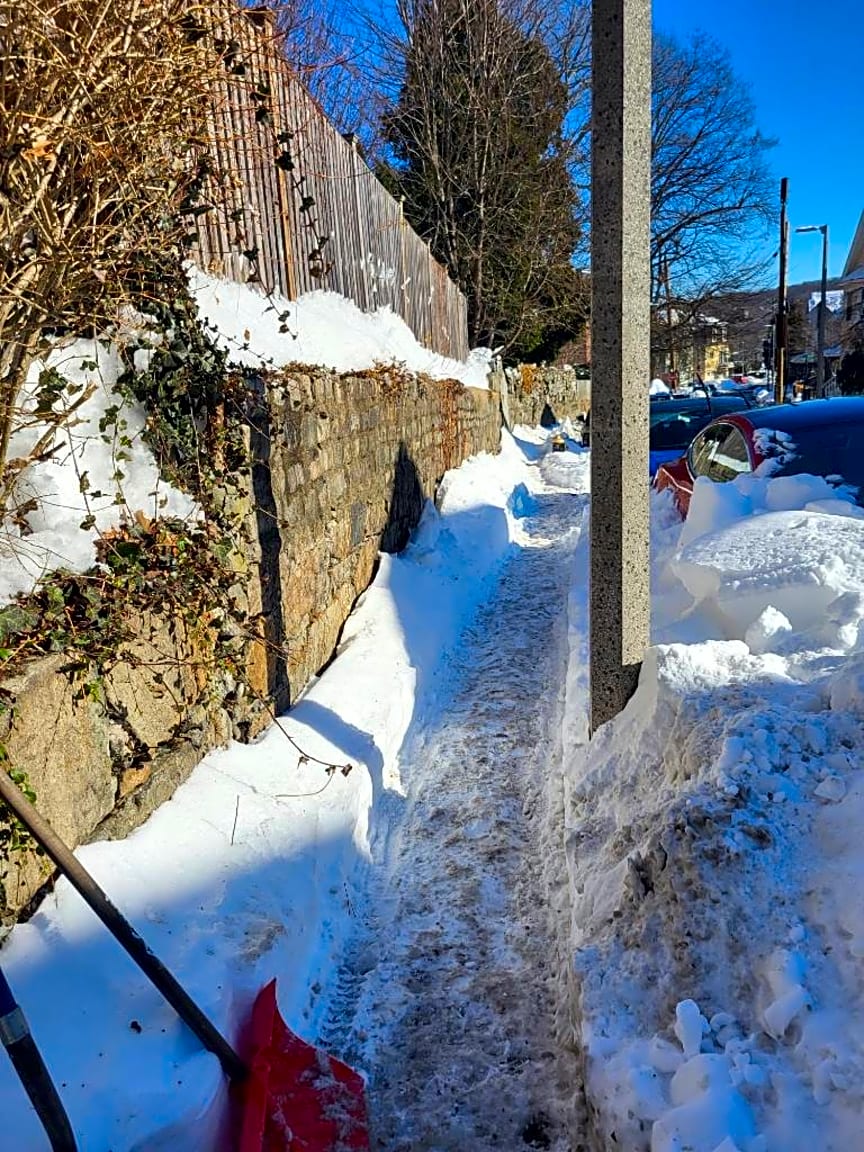 - Someone has shoveled all the snow from their car into the sidewalk, completely blocking the walking path, on the lot behind 115 Sedgwick St which borders Carolina Ave.