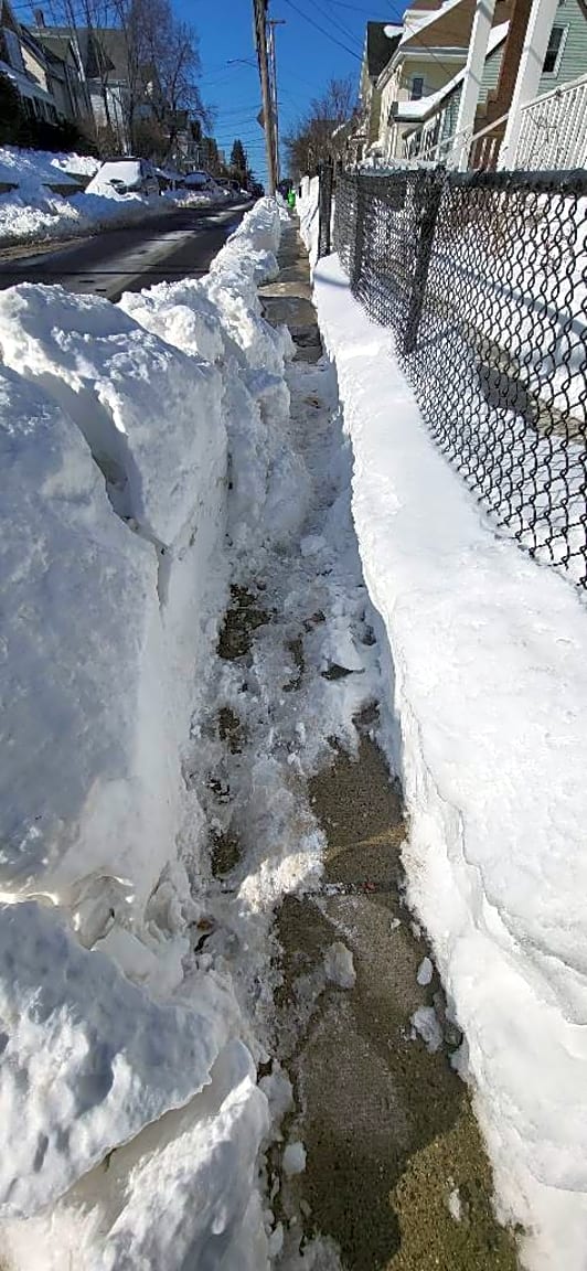 - sidewalk not shoveled ; 12 year old has to walk home in the street