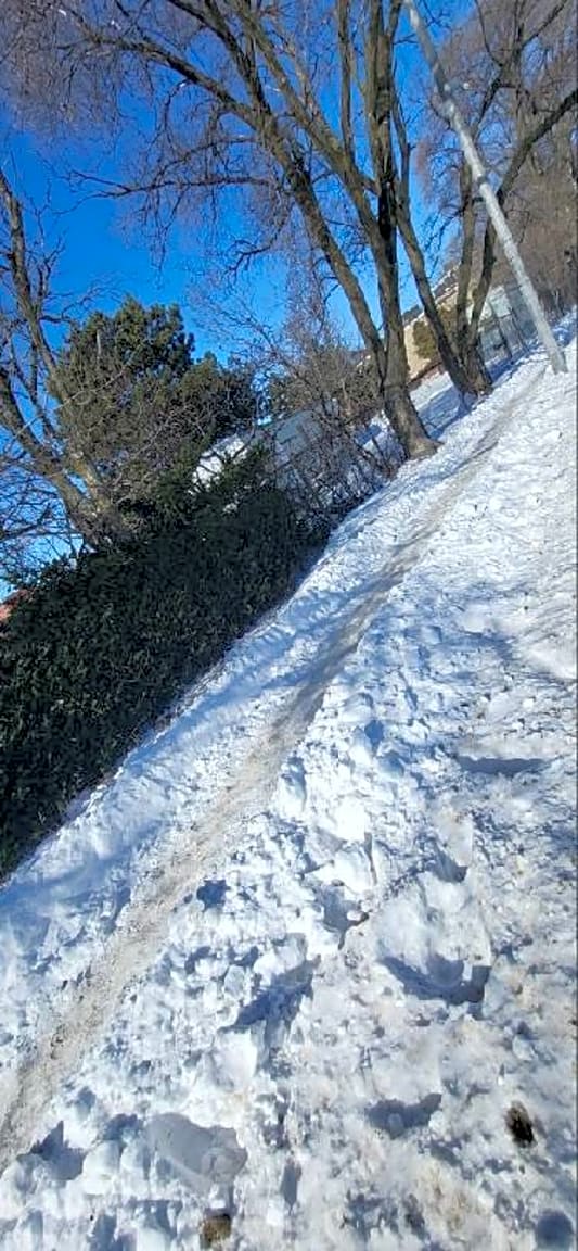 - sidewalk from JFK still covered in snow