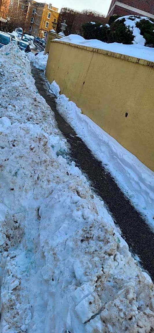 - Improperly shoveled the sidewalks in front of 66 – 70 Chiswick Road managed by Fineberg Management company improperly shoveled entryway where people have a hard time getting their baby carriages out. And it’s impossible to walk on the sidewalk. Also, the steps are wet and slushy and easy to fall and slip on.