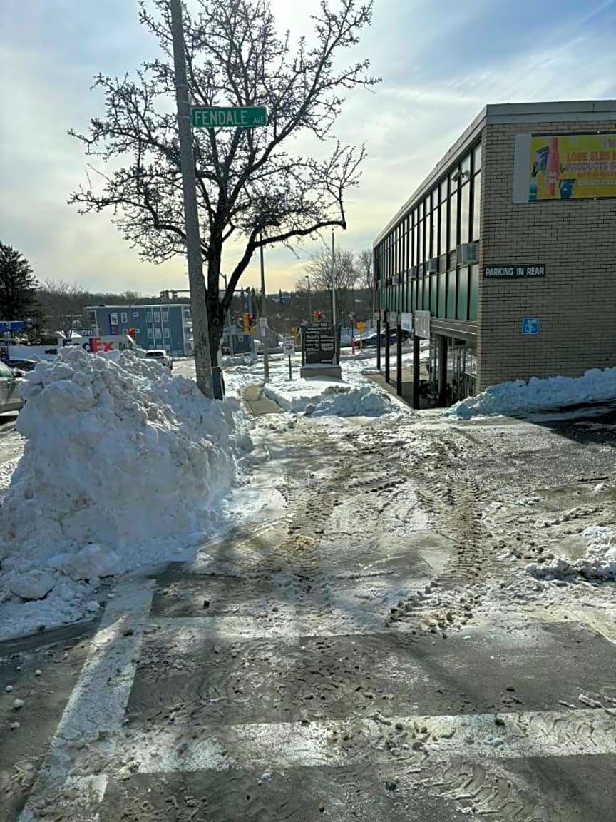 Resolved. Snow removed from the handicap ramp and crosswalk.