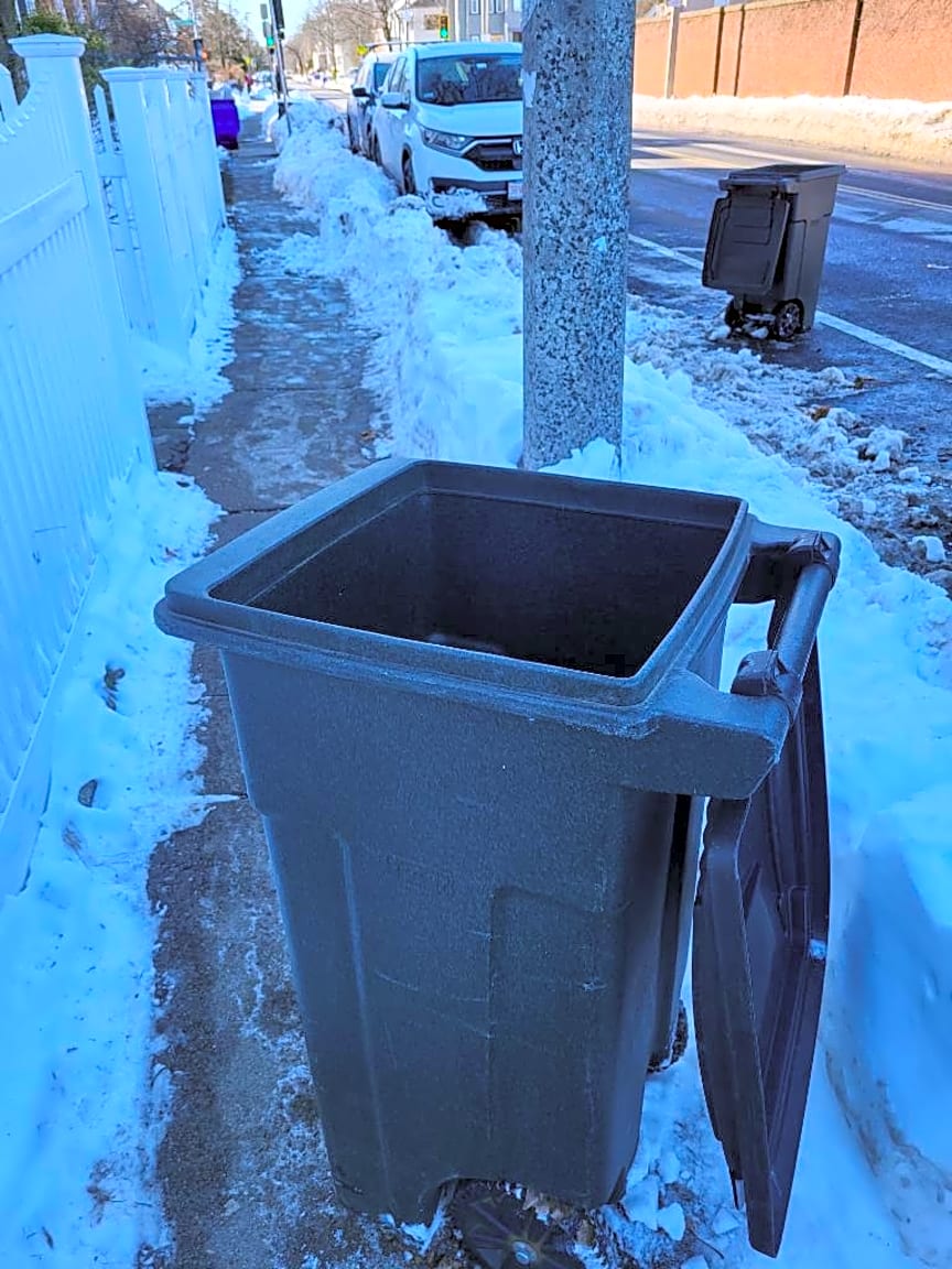 Noted. Trash serviced, barrels need to accessible at curbside, to avoid service issues barrels should not be on snowbank or behind snow piles.