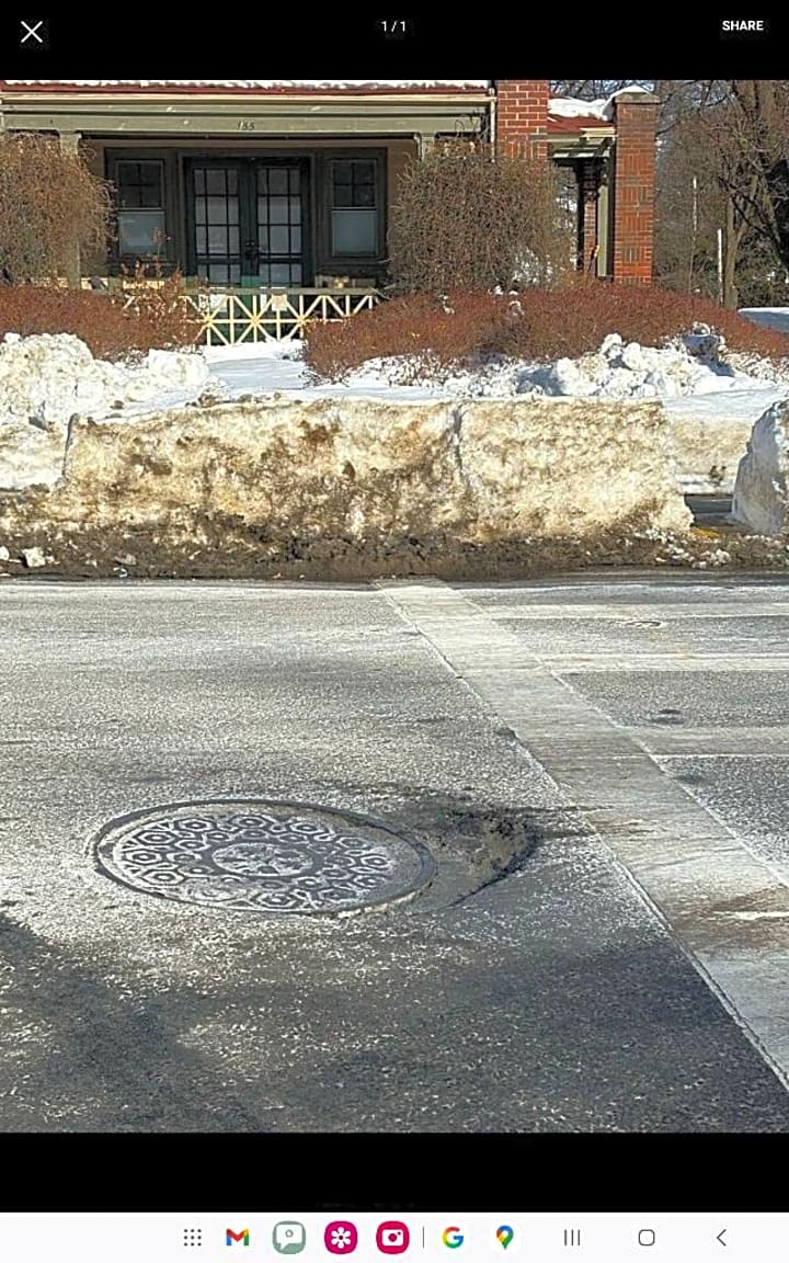 - Pothole next to manhole cover