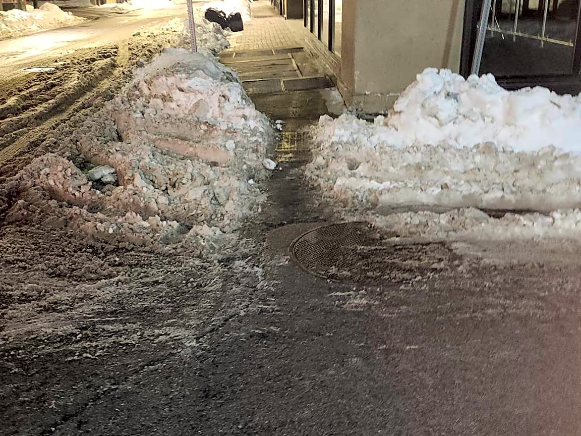- The corner of west street and mason on the sidewalk has not been shoveled and is icy for foot traffic. Also west street as a whole is not plowed and cars block traffic