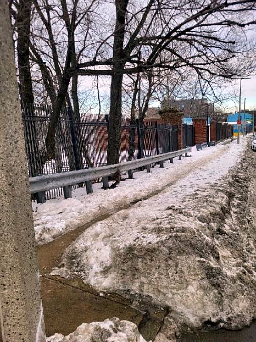 - Sidewalk not shoveled. This is either MBTA or city property. People are walking in the streets to avoid. This is dangerous
