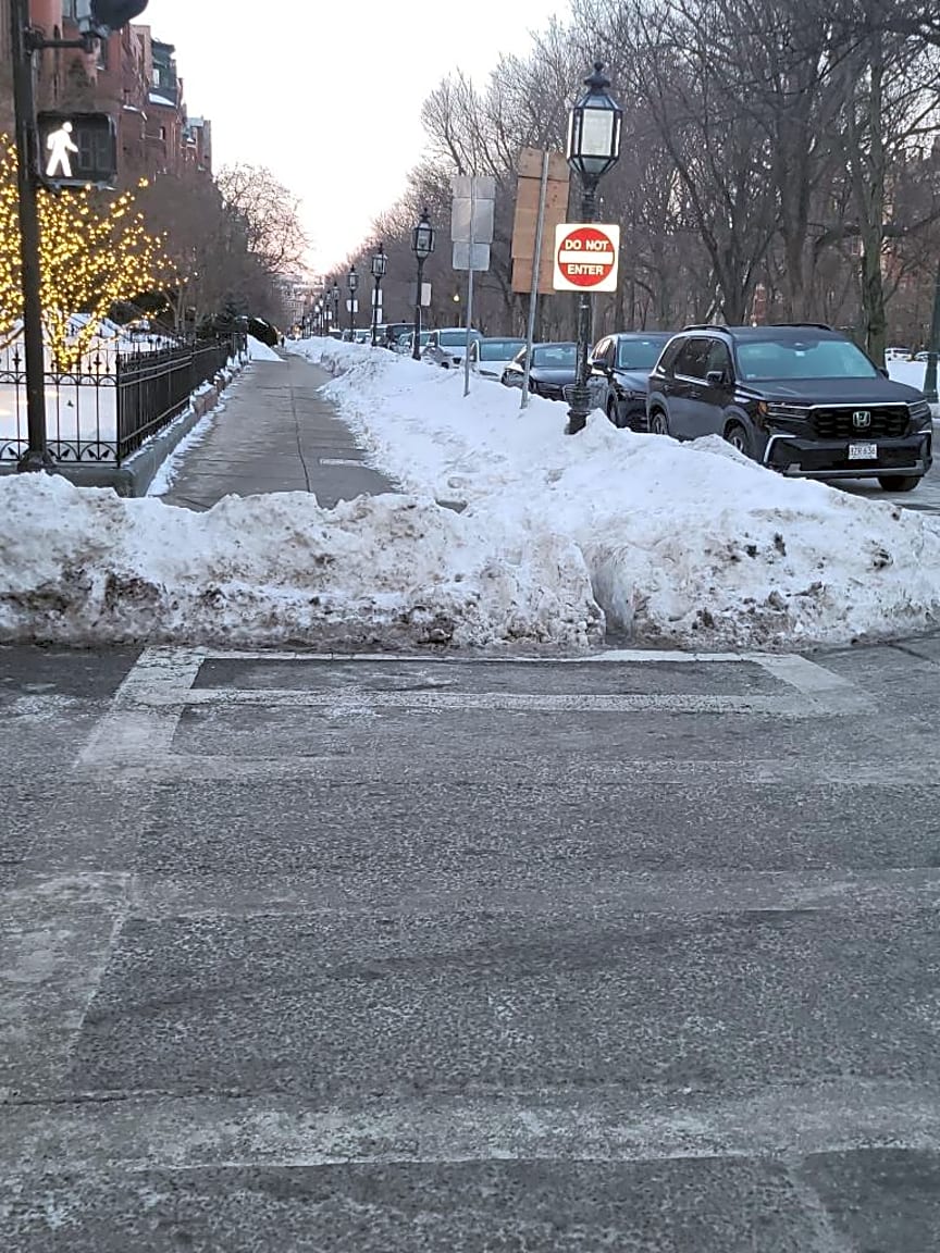 - Corner of Exeter and Commonwealth Avenue. Cannot use the sidewalk at all need to walk in the middle of the road to cross street. Extremely dangerous needs to be shuffled. It snowed over a week ago.