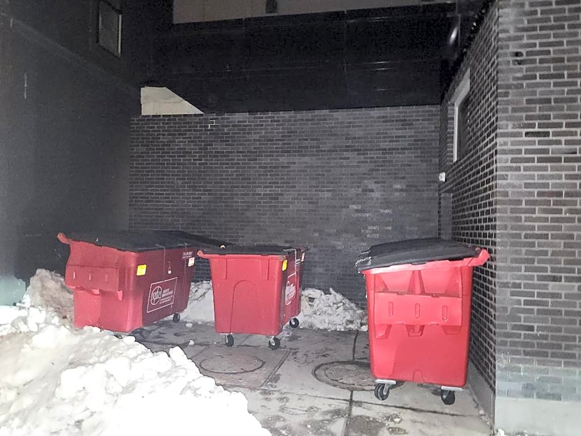 - 400 West Broadway in South Boston, trash is in the back on Athens St intersection (garage door light is red to identify the building) - trash pile up outside of the exit from the garage is absolutely insane. Nothing in the dumpsters, can't exit the garage to the outside due to the pile up. This happens once a week with no help from property management to clean up. |