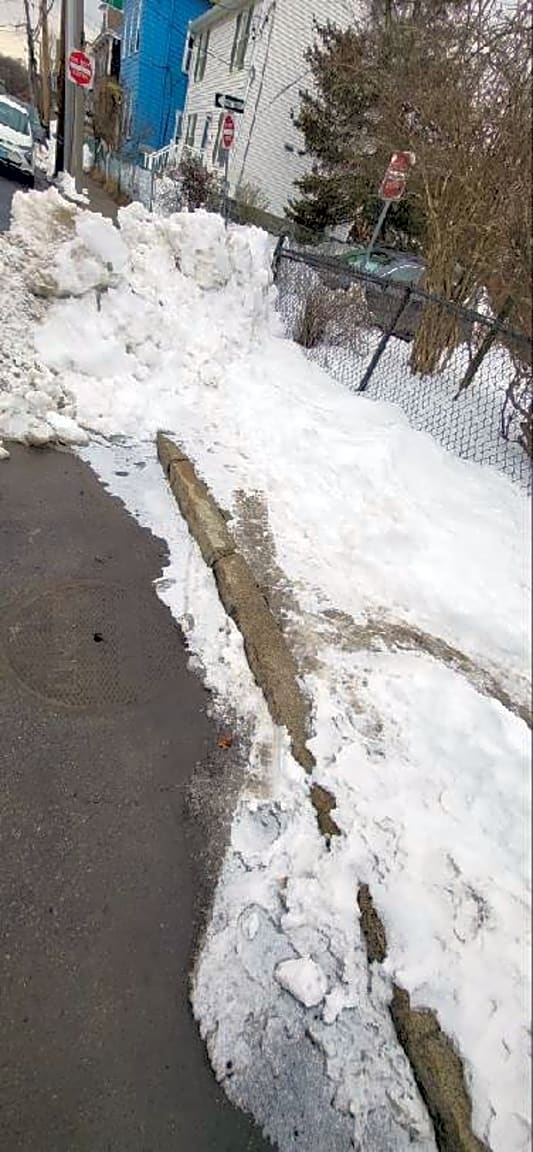 - Snow blocking whole corner after construction work at McBride and Lee. Also homeowner didn't shovel.