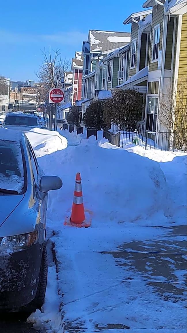- The corner of their yard is making it really impossible to get across the street at a busy intersection. | Unshovelled location: [Sidewalk] City Owned: [No] Exact location: [Side]