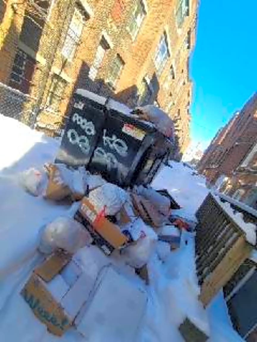 - Dumpster behind 895 Huntington Ave is constantly overflowing. The entire block of buildings share one small dumpster and the landlord mandates that they all share it. It is almost always too full of trash such that residents have no choice but to form piles of bags next to the dumpster. This is incredibly unsanitary and keeps attracting rats.