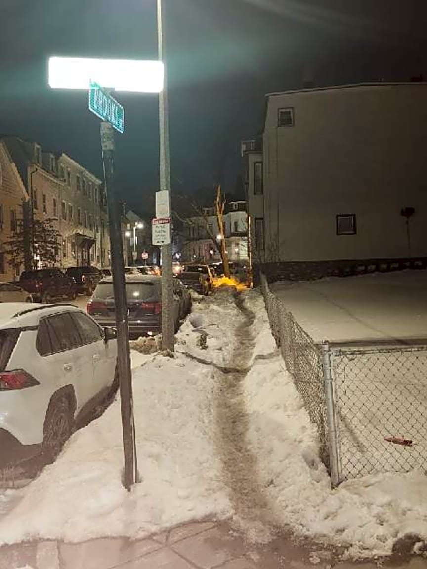 Noted. Failure to clear sidewalk of snow/ ice unsafe for pedestrian passage citation has been issued. Citation has been mailed to property owner.