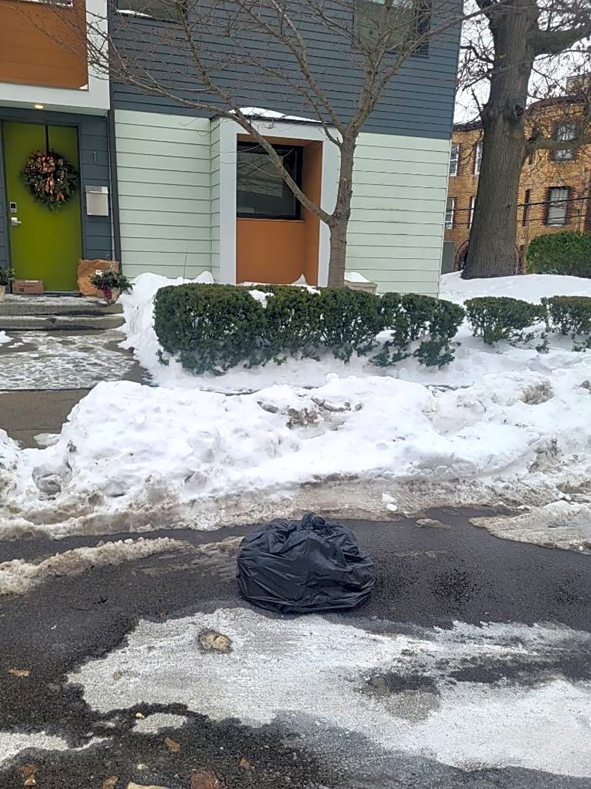 Noted. Trash bag was referred to dpw for removal.