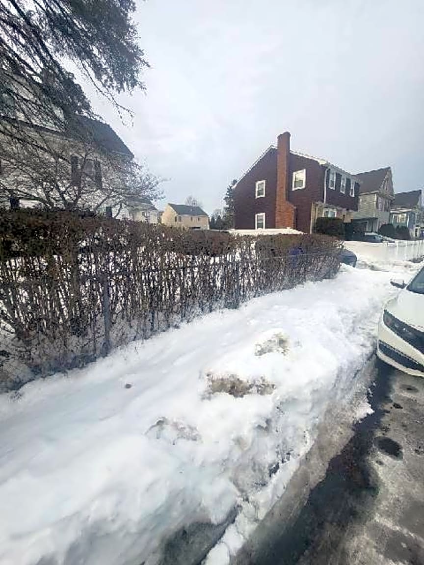 - Sidewalk not shoveled. Two weeks since snow and remains blocked.