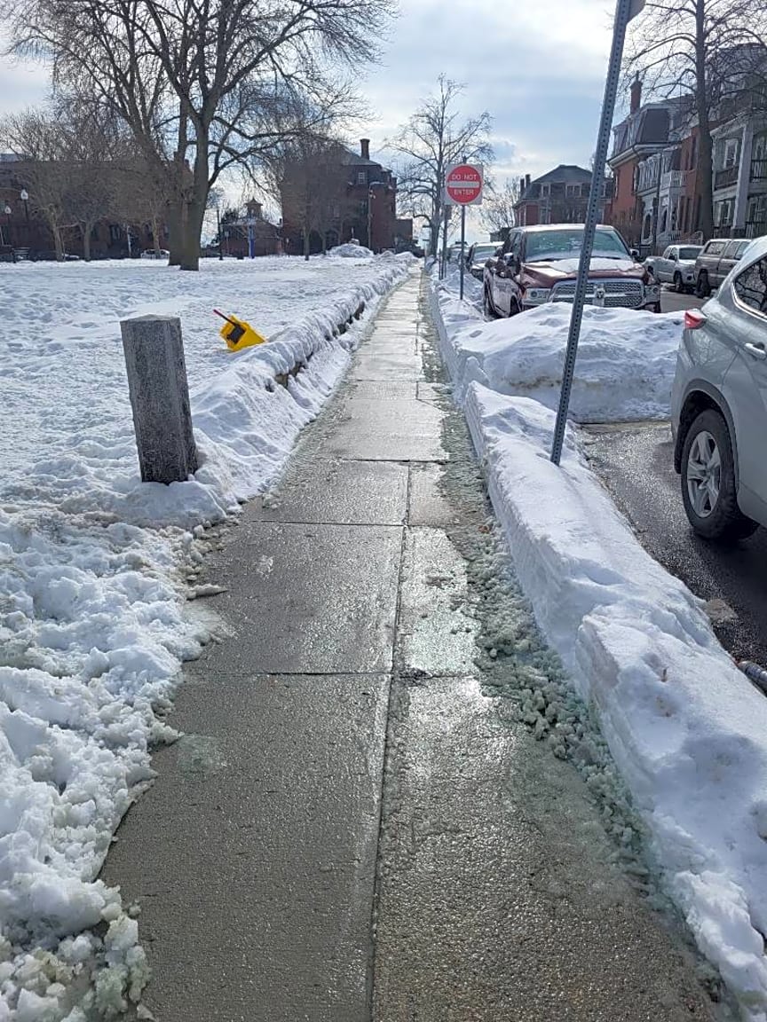 - Sidewalk on M street next to Medal of Honor park appears to have never been shoveled.