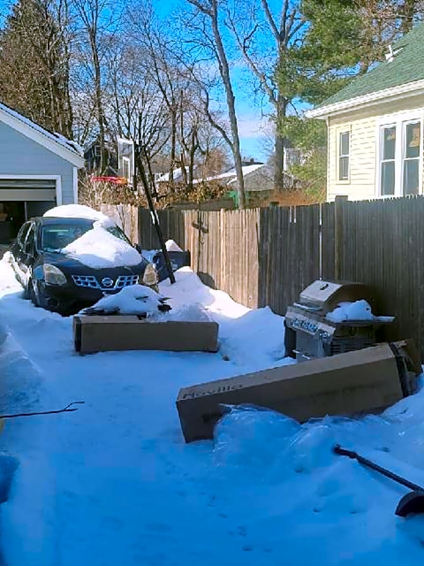 - Property conditions interfere with sidewalk passage | Details: [There is all kinds of trash/debris, construction material all over the property which is sometimes in front of neighboring properties.] Exact location: [The whole property]