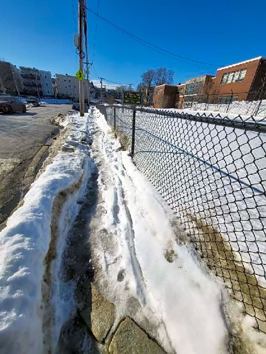 - Victory Rd, Dorchester Sidewalk from Mill St to 50 Victory rd all owned by Victory Rd Armory all Ice and snow.