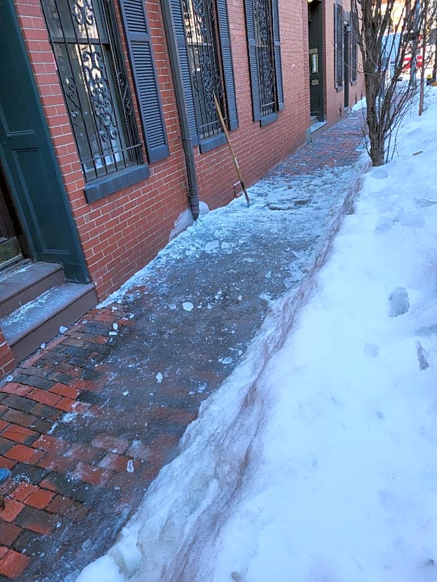 - Constiteunt states there is about a 4 inch layer of ice on the sidewalk in front of this address. | City Owned: [No] Exact location: [front]