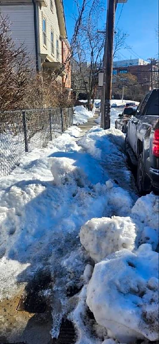 - 42 Lee street or 110 McBride st at the corner of Lee & McBride in JP. Not shoveled and blocking the sidewalk causing people with children to walk on the street.