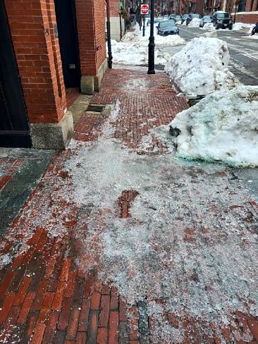 - Unsafe Sidewalk - condition has been existing for over a week and multiple people have slipped and fallen here
