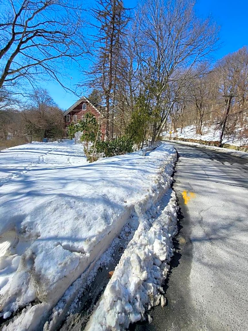 - 64 - 100 Allandale Road sidewalk not at all shoveled, pedestrians forced onto road around blind corner