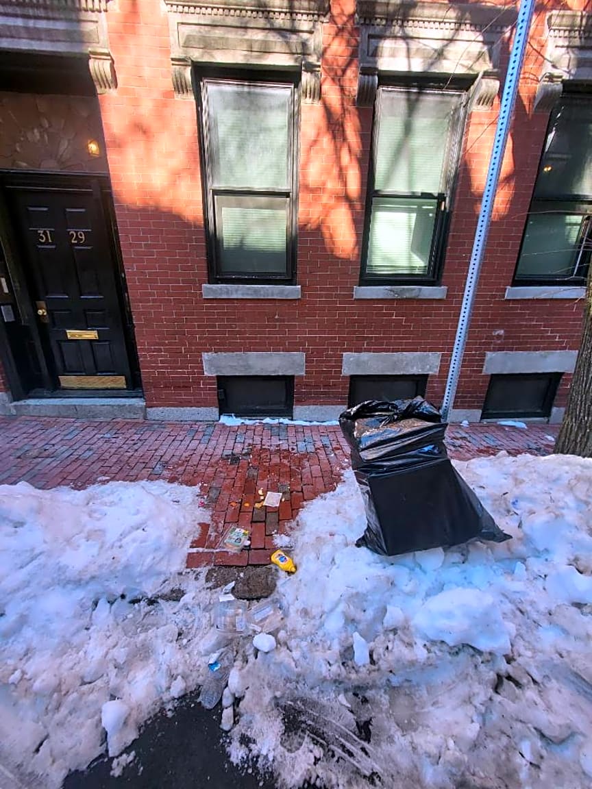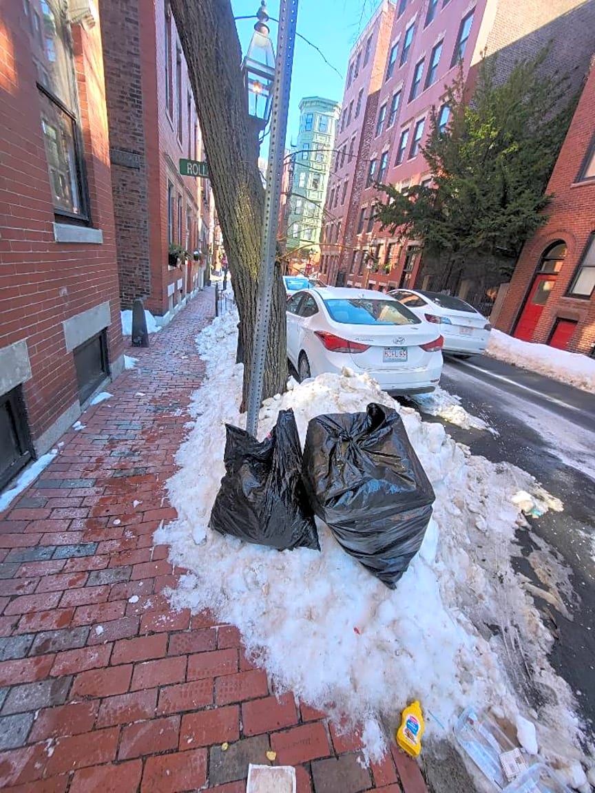 - Rubbish is placed out well in advance of pickup | Details: [Barrels out on sidewalk.Early]