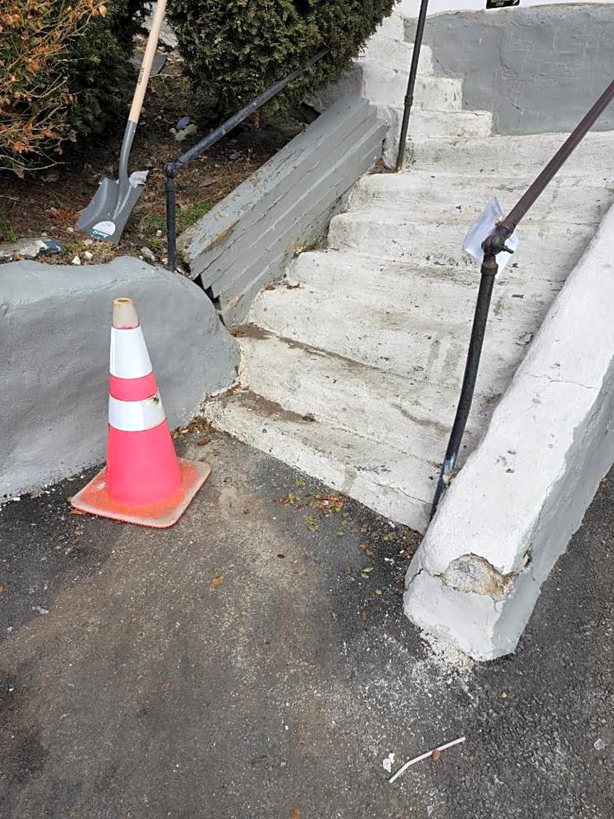 - Damage to stairs and retaining wall unsafe for public. Debris are in the public way. City should be notified unsafe the public can harmed. The public need to be protected as well as residents. Dangerous need immediate attention!