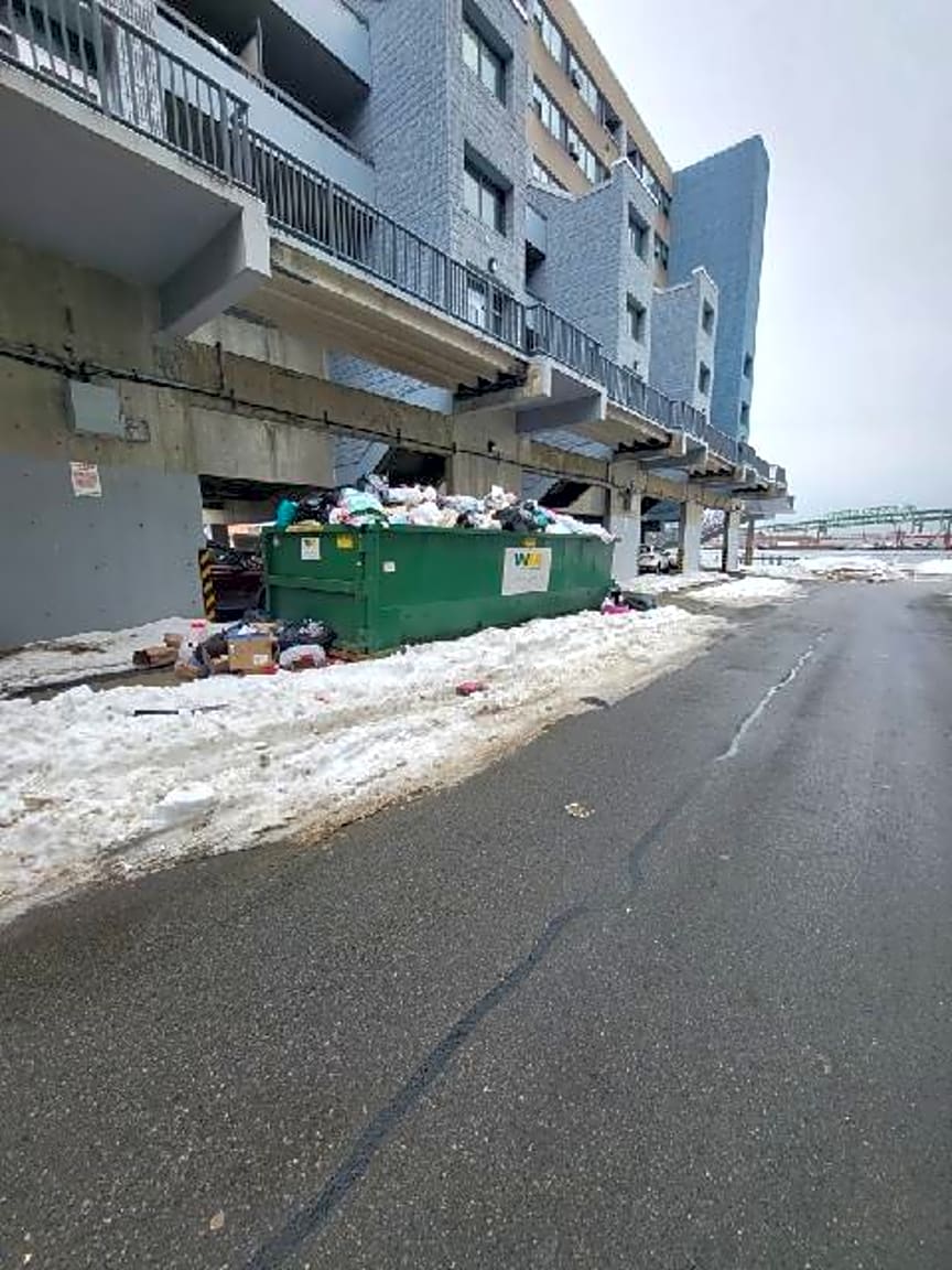 - 400/500 border street the trash underneath the parking garage is causing rats/geese other animals to attract to trash that's not properly stored