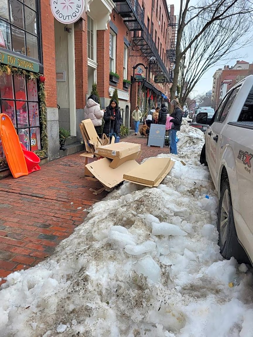 - Rubbish is placed out in unsuitable container | Details: [trash is from the residental building. Has not been collected and is an ongoing issuse Does not belong to the store] Exact location: [front]