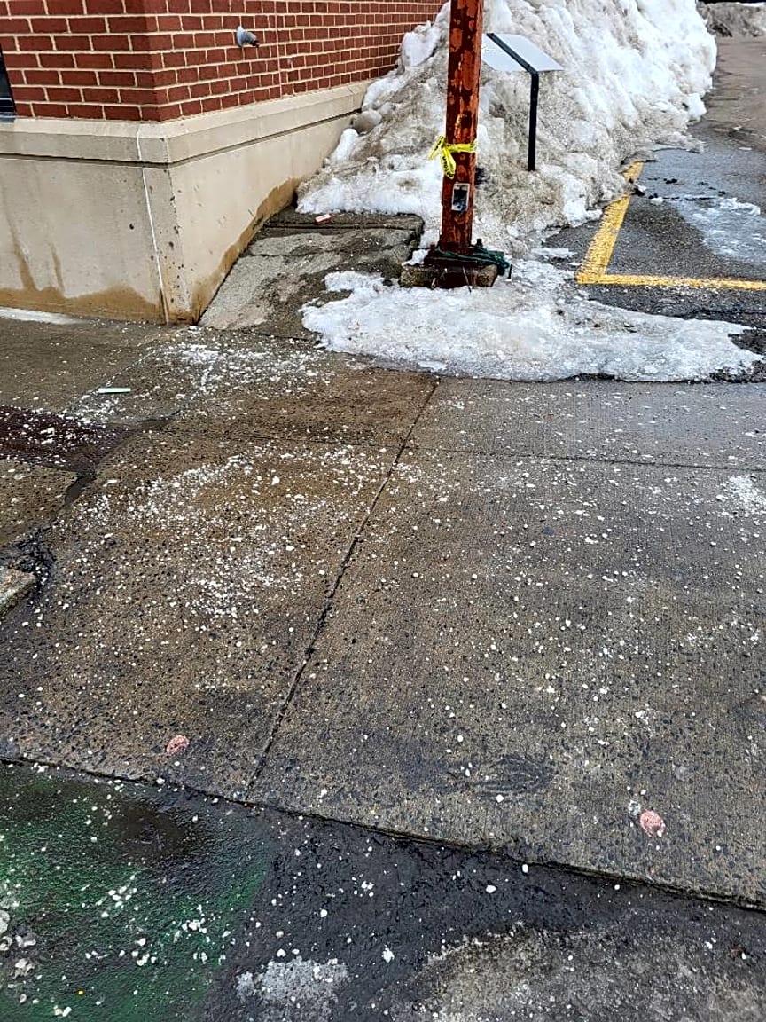 Resolved. No violation was found at time of inspection. Ice was treated.