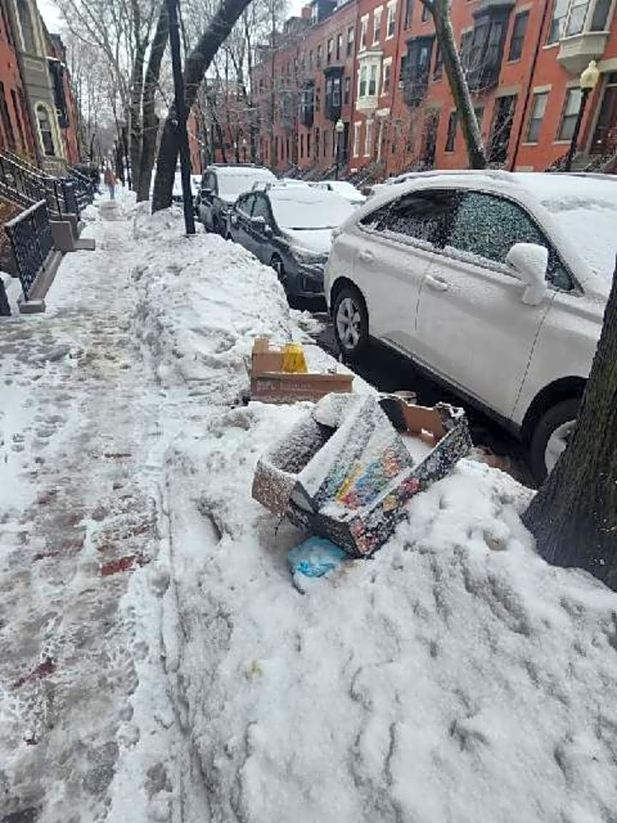 Noted. Boxes found dumped on sidewalk citation was issued at location sent to dpw for removal.