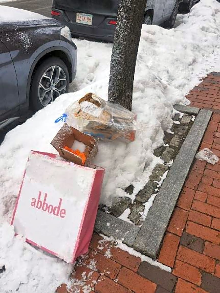 Noted. Bag and box found dumped on sidewalk citation was issued at location sent to dpw for removal.