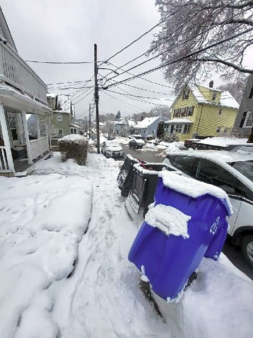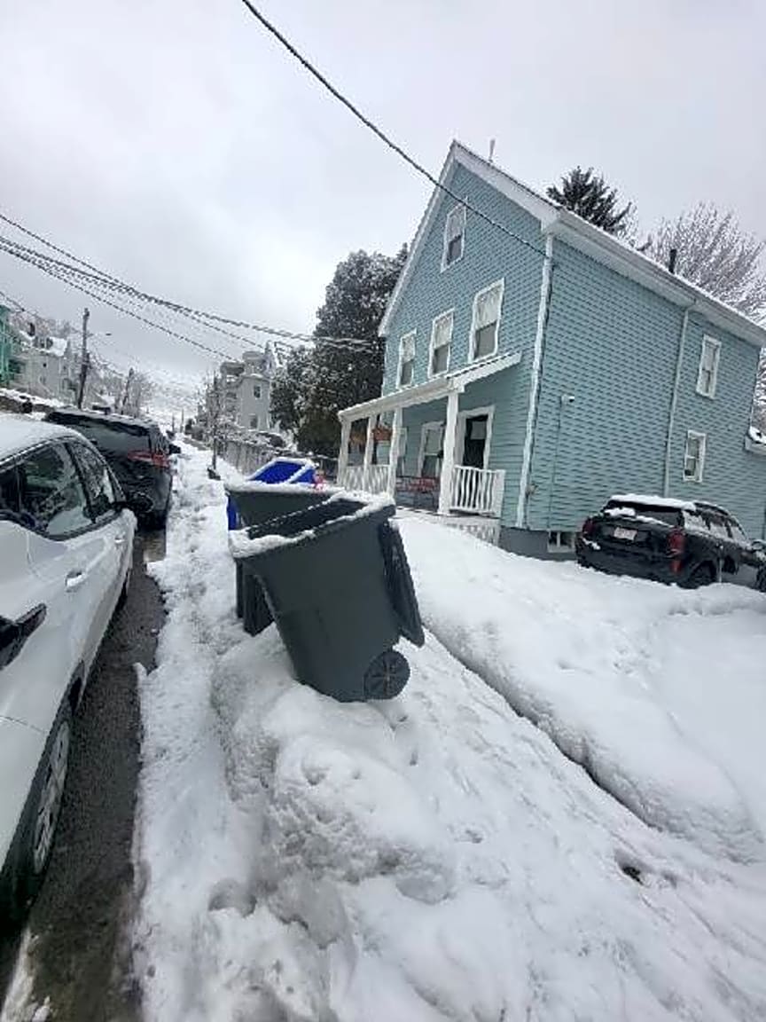 - Garbage being improperly stored (barrels left open and garbage left loose around the area) and barrels being left out in snow banks multiple days after pick up (Thursday).