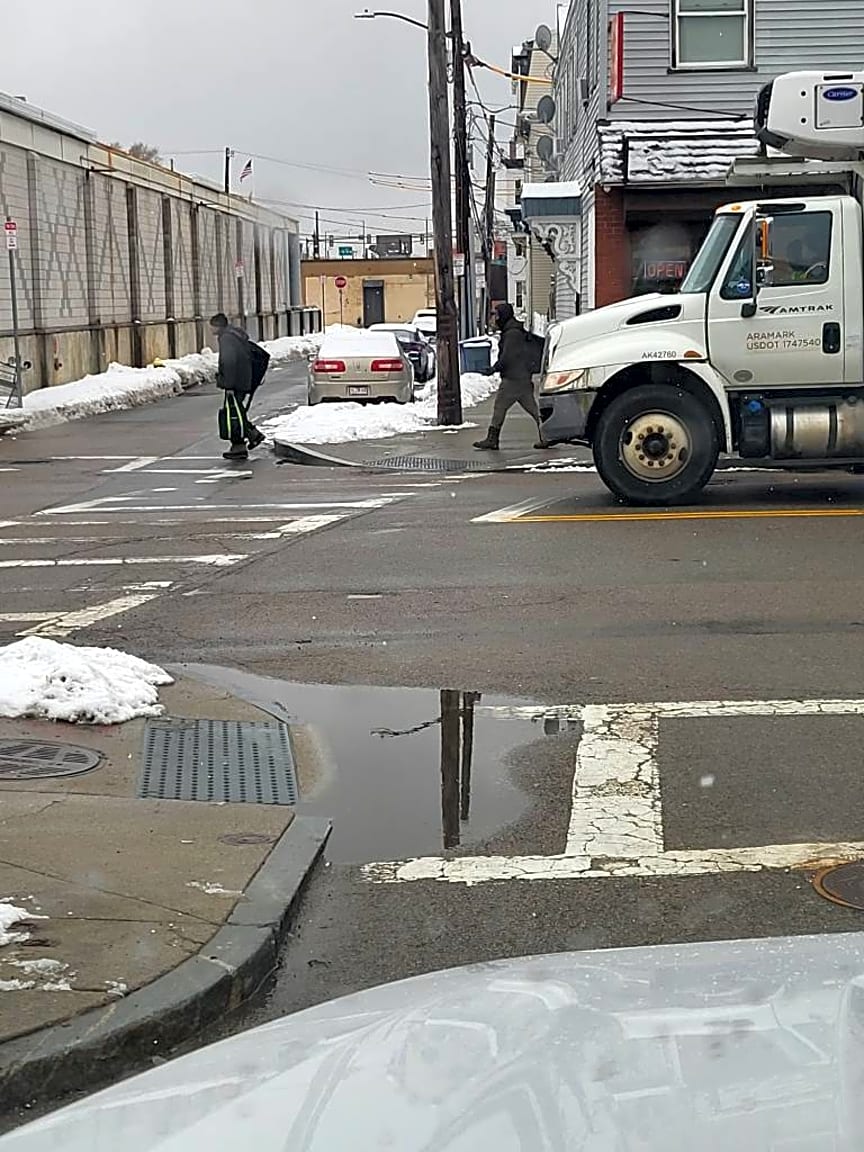 - Both sides of the sidewalk on Dorchester Ave are covered with snow people are having hard time walking because of all of the snow
