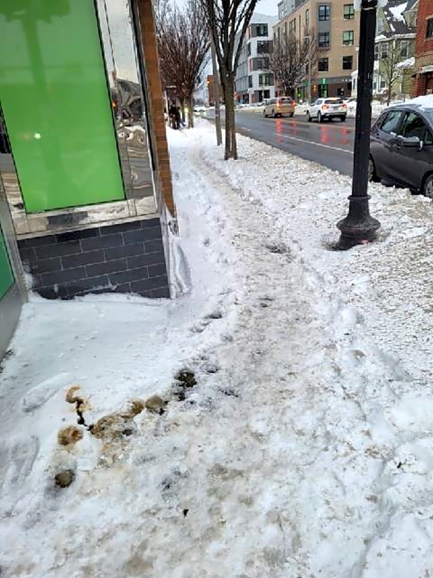 - Snow not shoveled or salted outside of Blank Street/Twin Donuts location at N Beacon St and Cambridge St, Allston, MA.